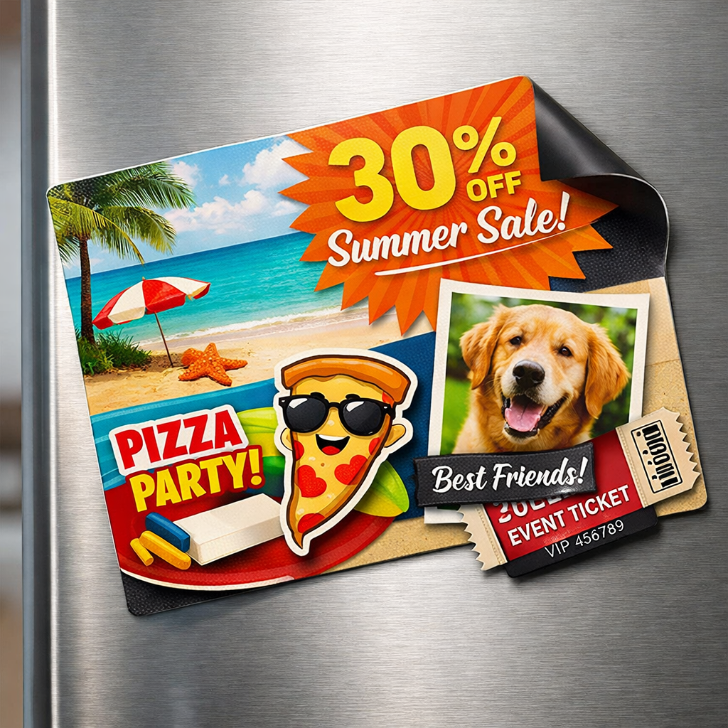Más ligero y flexible que los imanes tradicionales, ayuda a reducir costes de envío y facilita la manipulación. Puede cortarse, plegarse, troquelarse, perforarse o pegarse sin complicaciones.